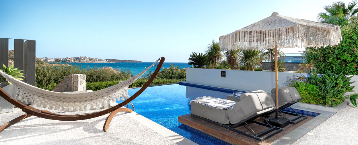 Sourcing a new property to truly match the exceptional standards and guest appeal of our established Simpson Hotel collection is never easy and yet, when the right place presents, the decision couldn’t be simpler. In a stunning position overlooking glorious Almyros Beach, just 2km from the centre of upmarket Agios Nikolaos, the moment we saw The Sand Suites we knew it was an absolute gem. Our prestigious new Simpson Hotel promises an abundance of style and the thoughtful touches that elevate the whole experience from charming to sublime, offering that rare kind of luxury that whispers rather than shouts; a blend of stillness, refinement and effortless good taste that prompts relaxation from the moment you arrive.