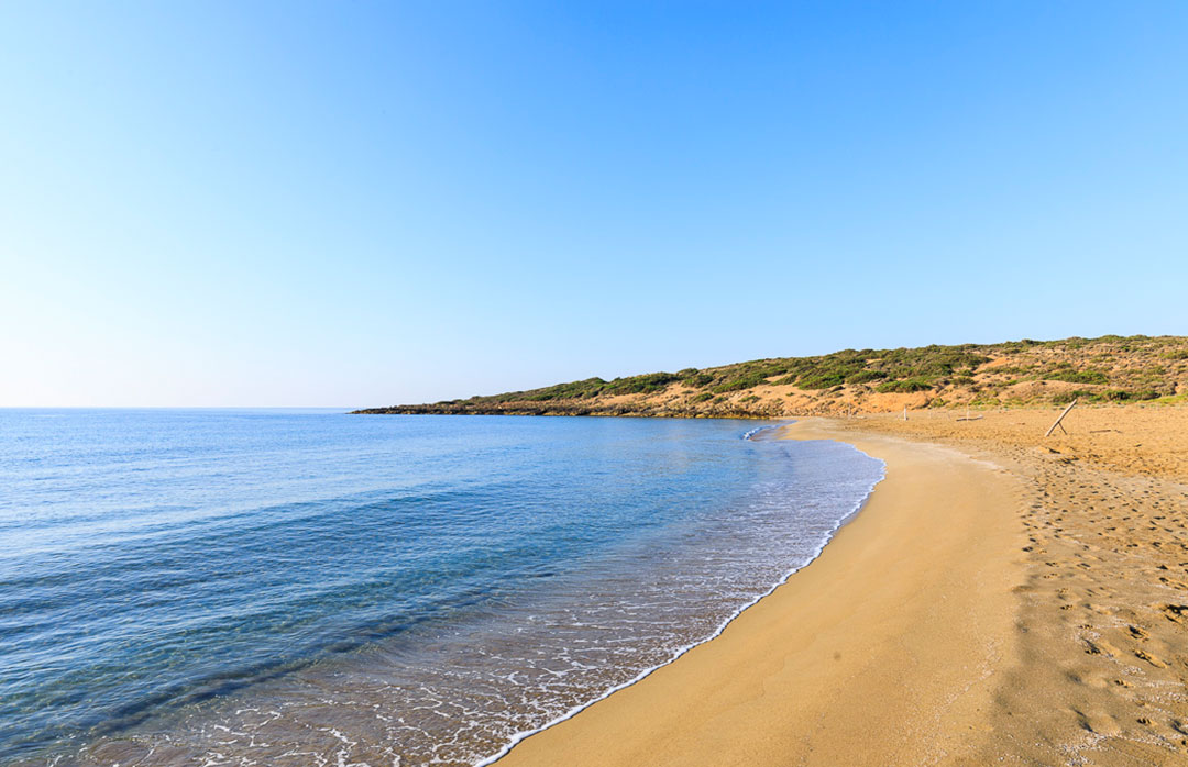 A wild spot where the Ionian and Mediterranean seas meet, ideal for wave-lovers and surfers, with a tiny islet just offshore.