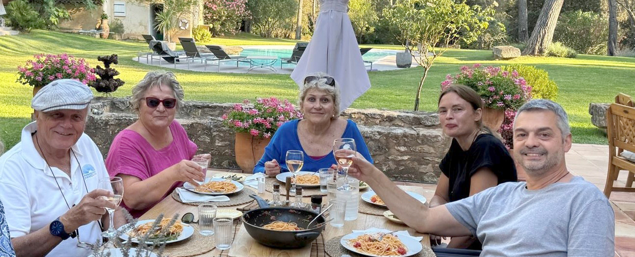 And talking of shared joy, Yianna and I feel very lucky to be spending three weeks with family and friends in France this summer. At the moment we’re staying at La Bastide du Paon Bleu in Provence, where mornings are spent exploring and savouring delicious pains au chocolat and coffee in various Provençal villages, followed by a lazy afternoon reading books by the pool with the occasional dip, supper on the terrace and with the highlight of the day being a very competitive game of pétanque (boules) between the boys and the girls. I am very pleased to say that we fellas are winning at the moment, much to the chagrin of the fairer sex, who seem to resort to every devious trick in order to put us off our stride!!